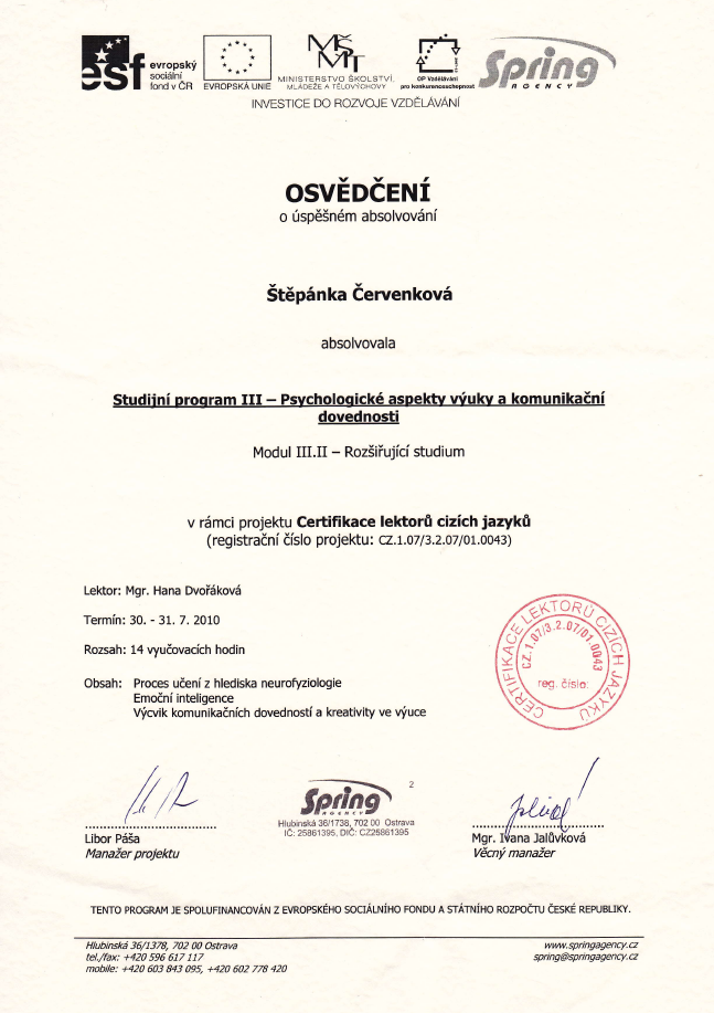 Jmenuji se Štěpánka Červenková a jsem zkušená lektorka angličtiny z Ostravy.